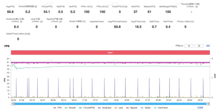 半小时须弥城跑图,全程稳如老狗,平均60.8帧,功耗也只有3.9W。